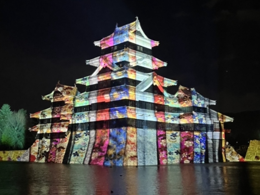 国宝 松本城の天守や石垣に、デジタルアート映像を投影。